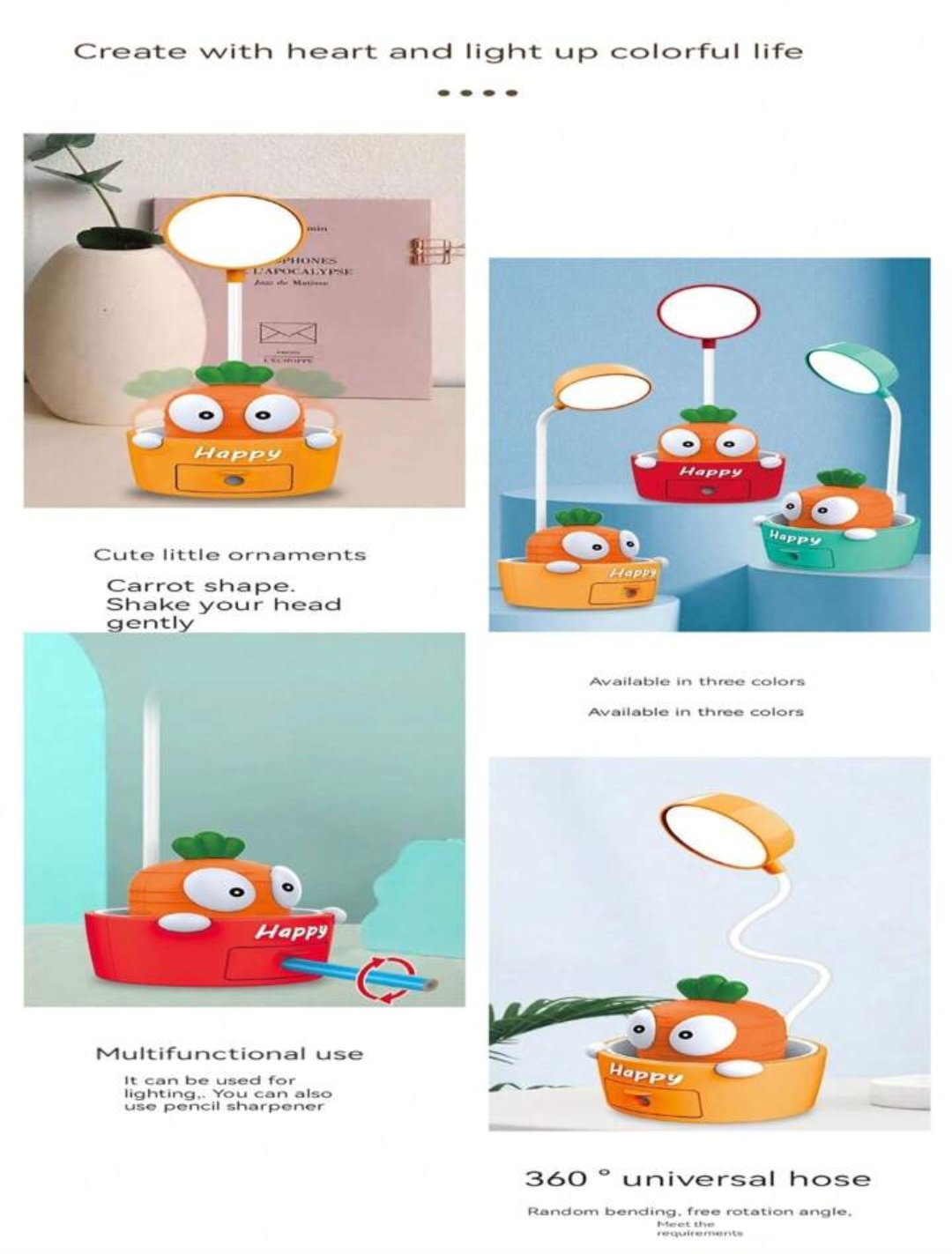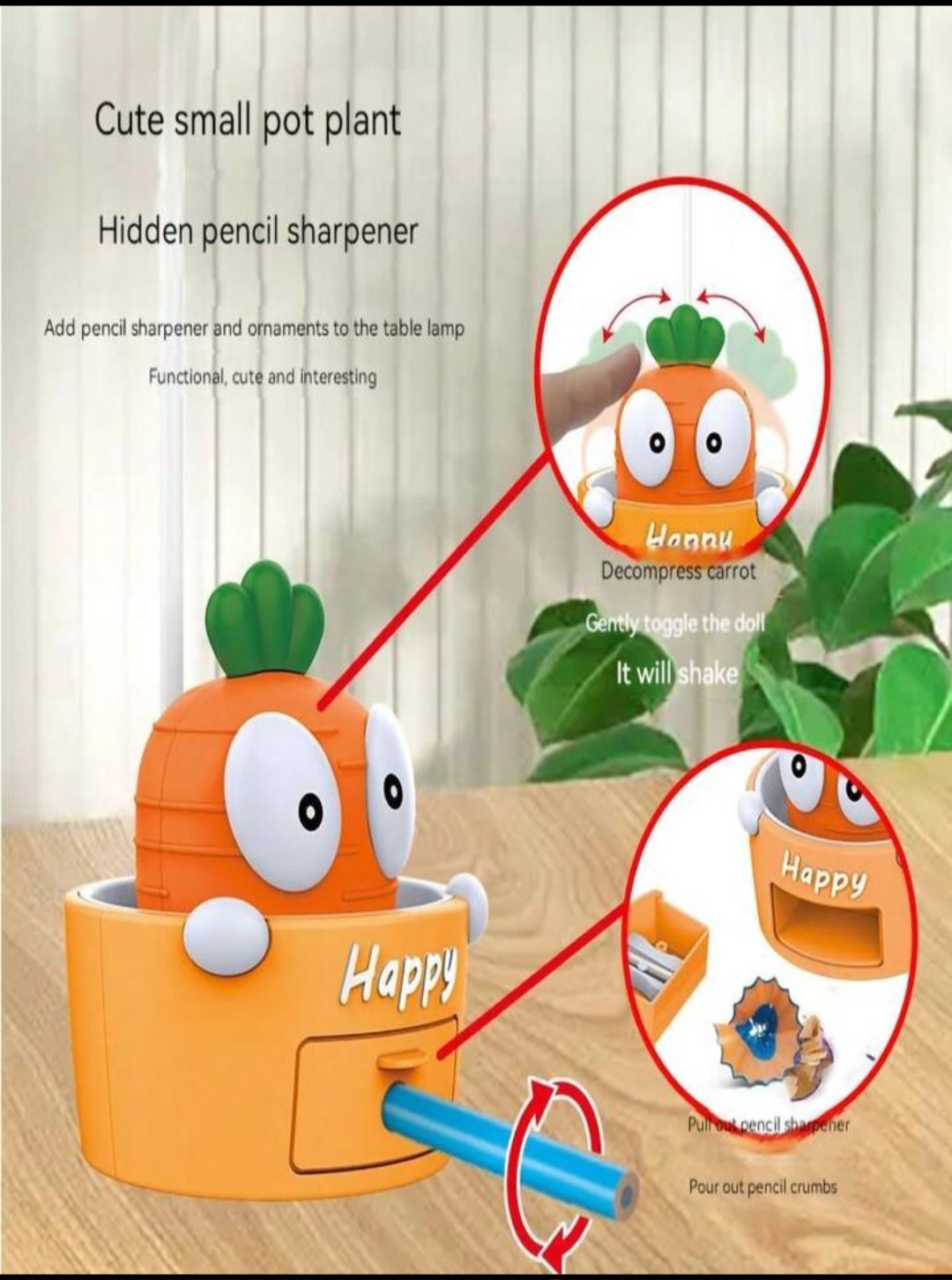 تراش مخزن دار 3 حالت نور عروسک هویج فنری
